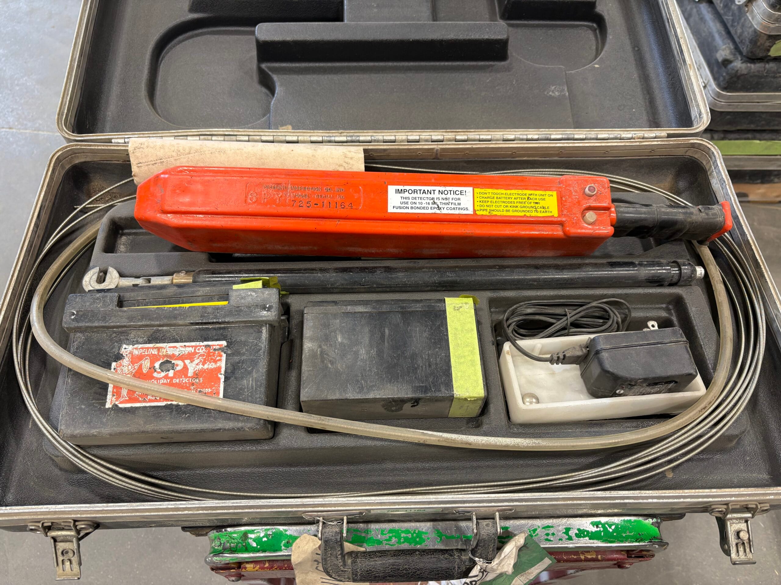 Designed for thicker coatings such as coal tars, extruded and tape coatings. The Model 725 has a range of infinite voltage settings from 1,000 to 15,000 volts. This wide range permits you to maintain a steady inspection rate on most types of coatings.